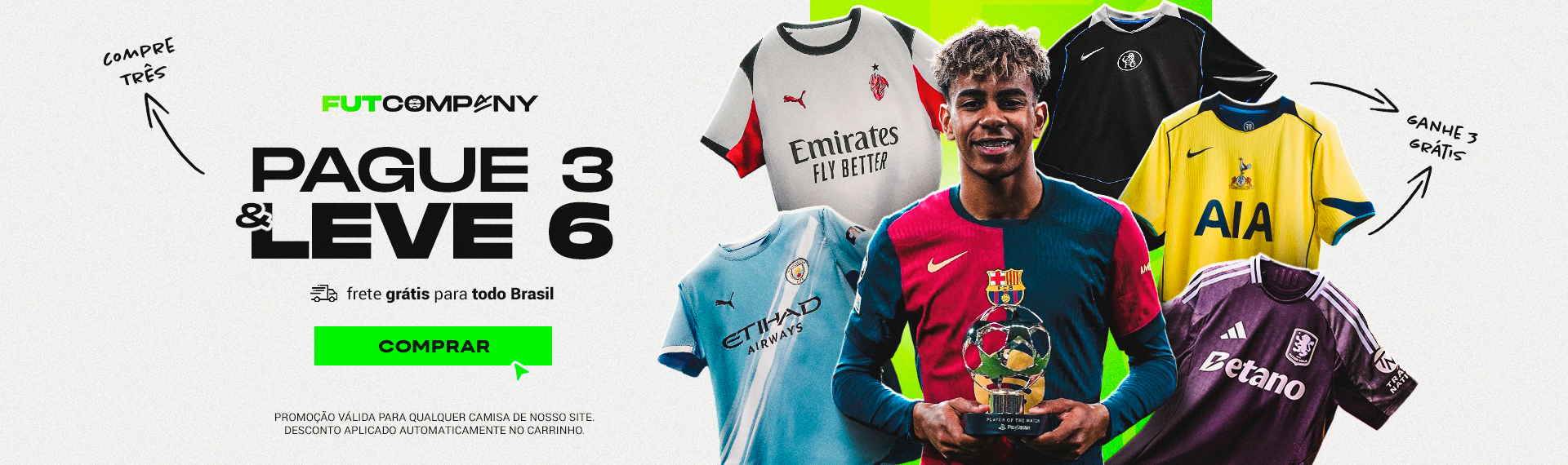 Sim! Muitas camisas permitem personalização. Basta selecionar a opção "Personalizar" e preencher nome e número antes de adicionar ao carrinho. Seu manto chega único, do jeito que você sonhou.
